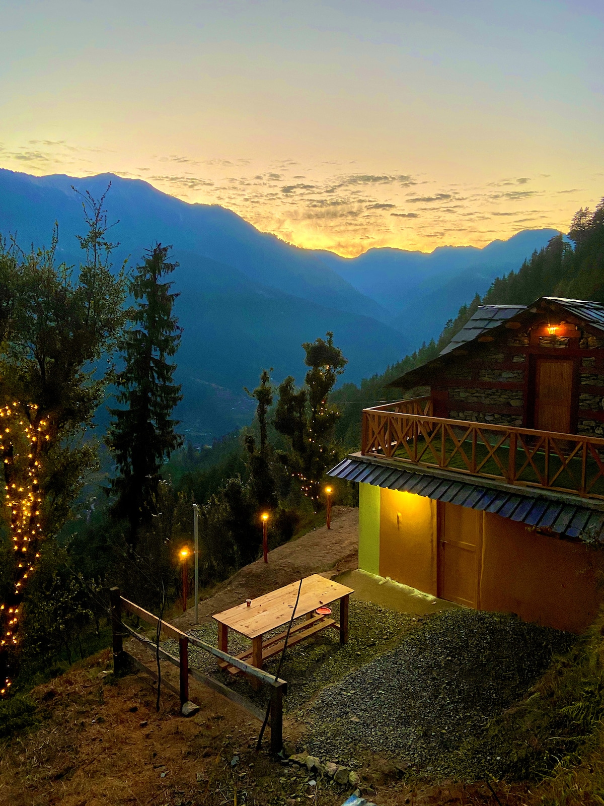 A cozy earthen home with a rustic vintage vibe. A place for the experience of exploration, reconnection with nature and slow-conscious living. Our Earthen home is located on top of a mountain within Jibhi valley and in between a dense Deodar forest offering a panoramic view of Pir-Panjal and Dhauladhar ranges, With a beautiful landscape that changes with every passing season. Situated in the quaint village of LUSHAL, our cottage is away from the crowd and hustle of mainstream tourism.