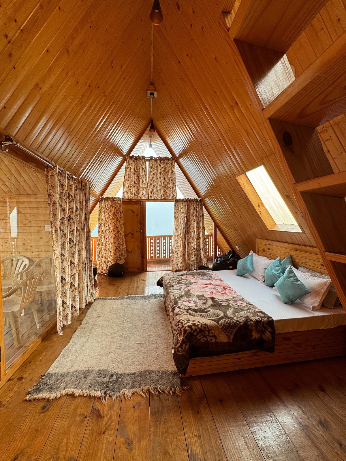 Get away from it all when you stay under the stars. What You’ll Love - ★ Close to nature ★ Cozy master bedroom and Balcony ★ Attic with second bed ★ Beautiful wooden architecture ★ Wi-Fi ★ Delicious in-house food service ★ Garden with bonfire area Please note - - Breakfast, meals, room heaters, bonfire, and other services are charged separately and are not included in the stay price. - Please note, there is 100 meters trek from parking spot to the property. We will pick your luggage.