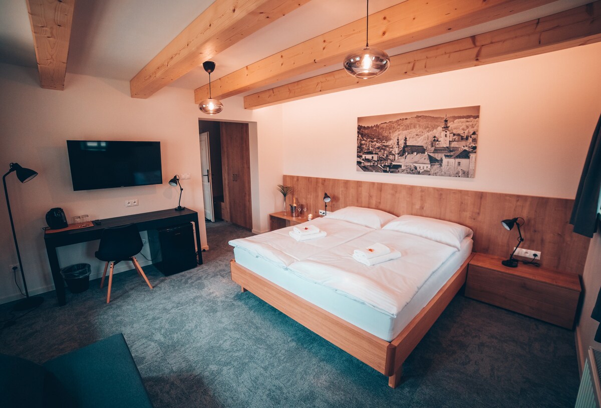 Stay in the 200 + year old house, which is one of the world's historical heritage. The guesthouse is fully renovated and tailored to the needs of modern travelers. Stay in cozy rooms, enjoy good food and care like your own family. It's the best place to start exploring the amazing history and sights of Banska Stiavnica. After the hike, you can sit in a bar or garden. The special room is also fully equipped for corporate events or family celebrations .