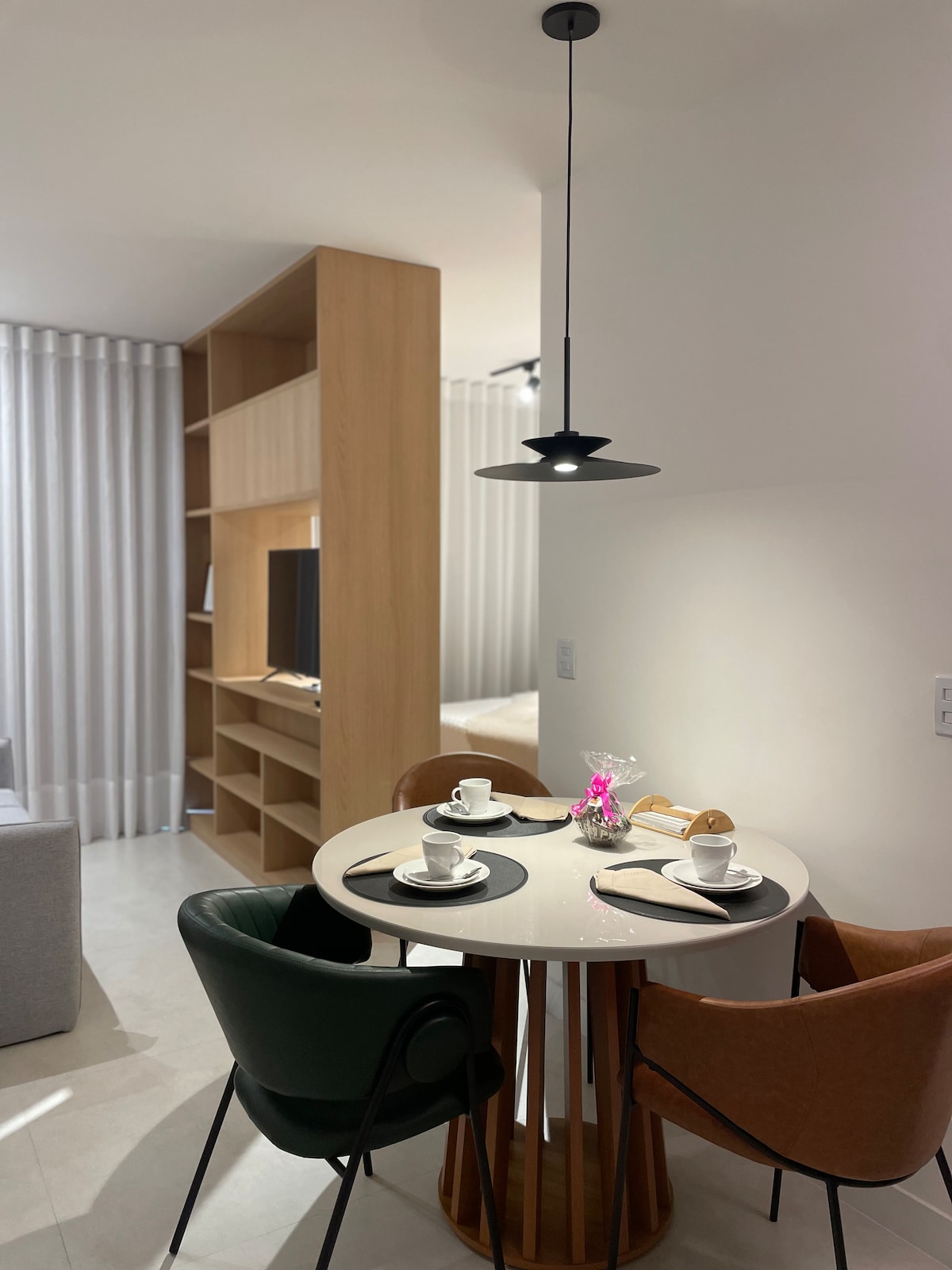 Loft moderno e climatizado em prédio de alto padrão. Ideal para executivos, casais e turistas. No imóvel: • Sala de estar/jantar integrada com Smart TV. • Cozinha completa • Wi-Fi veloz • Banheiro completo • Área de serviço c/ lavadora • Ampla sacada No condomínio: • Vaga de garagem gratuita • Piscinas externa e coberta aquecida • Sauna • Sala de massagem e reunião (com agendamento) • Lavanderia pay-per-use • Mini mercados • Garagem privativa • Portaria 24h