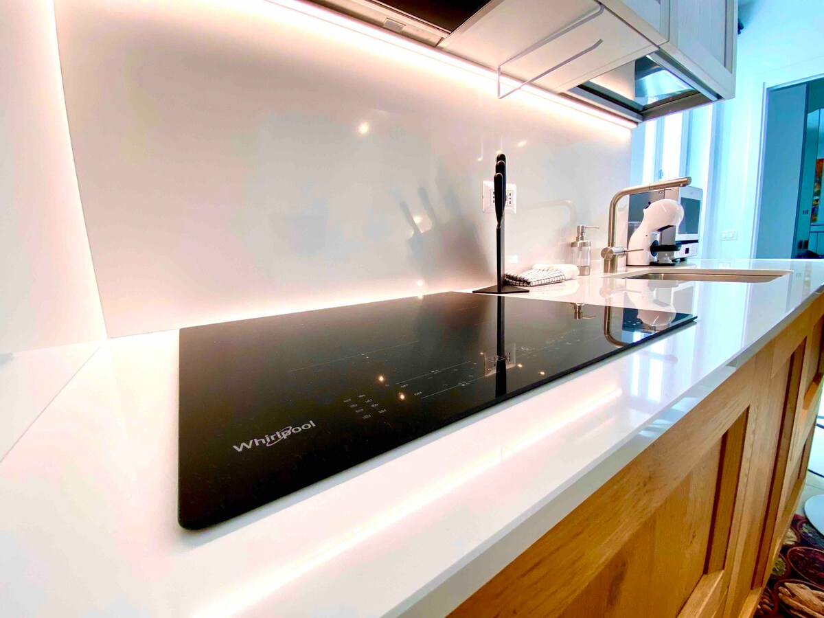 Enjoy our house, a design apartment where iconic pieces of furniture merge together with vintage touches. Recently refurbished, it offers three large bedrooms with independent bathrooms. On the first floor a large balcony offers a view over Garda and the Rocca (hill). On the second floor a wide glass window creates a unique environment between the open living room, the terrace, the sky and the lake. 5 minutes walk from the lake, our apartment provides an exclusive permanent parking space.