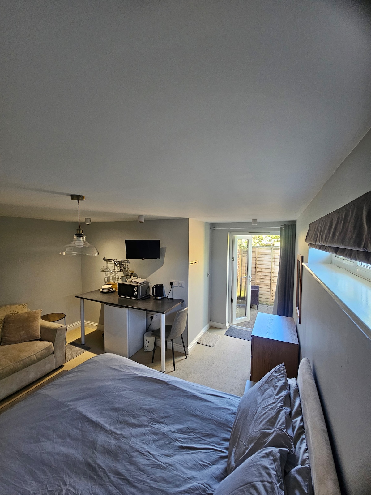 Enjoy a comfortable stay in this cosy and private guest suite, complete with your own private entrance, en-suite bathroom, and kitchen area. Whether you’re travelling for work, visiting family, or exploring the area, this space offers the perfect mix of comfort and convenience. Enjoy easy access to everything Gloucester has to offer just 1 mile from the city centre. It is also a short drive away from the M5 and Cheltenham . There is a nearby shop , pub , takeaway and bus stop .