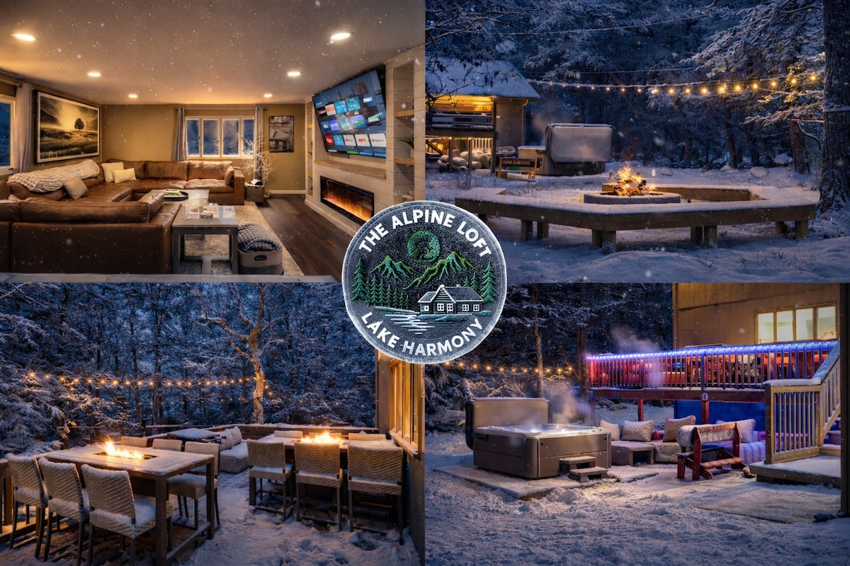 Escape to a cozy fall getaway near Kalahari, Mount Airy Casino, Crossings Outlets, Lake Wallenpaupack, & Tobyhanna State Park 2 miles away w/ fall foliage, & mountain air, lake views, wildlife, & picnic spots. Nestled off a rugged private road. This spa style retreat has a soaking tub, rain shower, smart lights, kitchen w/ smart stove, plush beds, LED mirrors w/ music sync, & retro arcade fun. Perfect for couples, birthday getaways or families seeking a peaceful Poconos stay w/ modern amenities.
