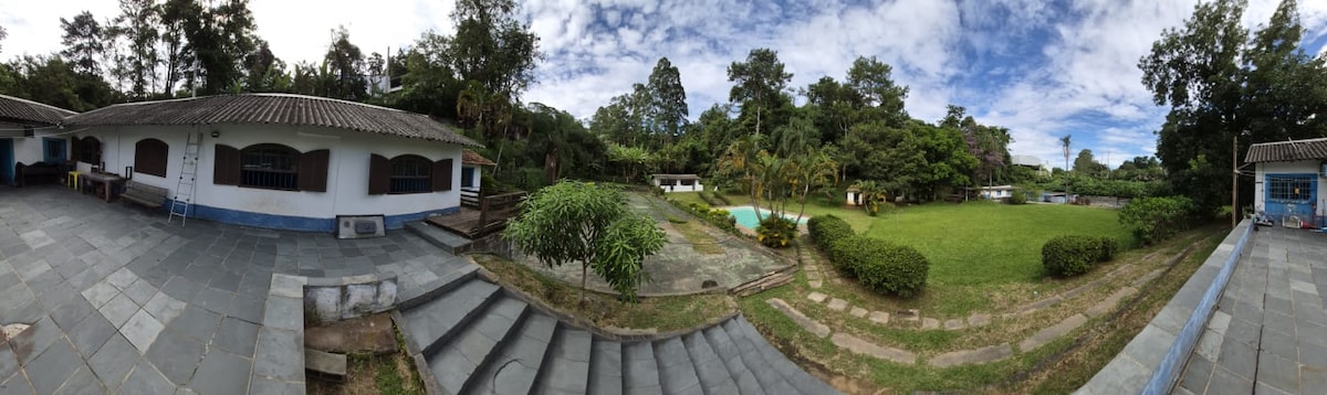 Chácara em Itapevi cercada por muito verde, ideal para descansar e reunir família ou amigos. A casa acomoda até 12 pessoas nas camas e possui 4 suítes, piscina, churrasqueira e lareira interna, oferecendo conforto e lazer em um ambiente tranquilo. No terreno há uma casa secundária onde mora uma família de caseiros, em área separada, disponível apenas para apoio e manutenção, sem interferir na privacidade dos hóspedes.