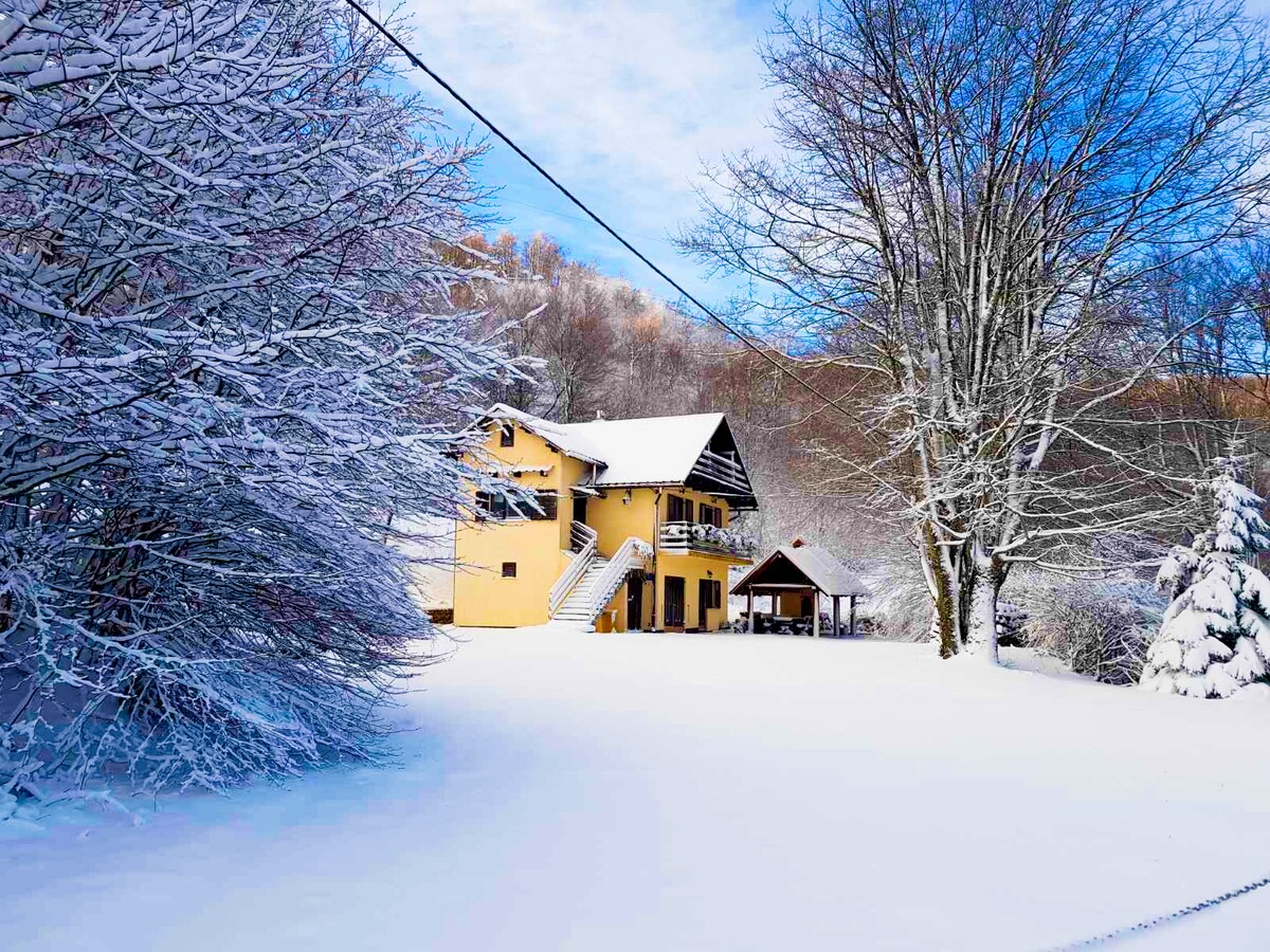 Opustite se sa svojom obitelji u ovom ugodnom smještaju. Rustikalno uređena kuća za odmor sastoji se od apartmana i studio apartmana. Nalazi se u Baškim Oštarijama, koje su 20ak km udaljene od Gospića na jednu stranu i od Karlobaga na drugu. Ukoliko dolazite ljeti, obavezno ponesite i topliji set odjeće jer je navečer prohladno, što ovo mjesto čini idealnom destinacijom za sve koji žele predah od ljetnih vrućina. Do mora ima 20ak minuta autom pa se preko dana gosti vole spustiti na kupanac.