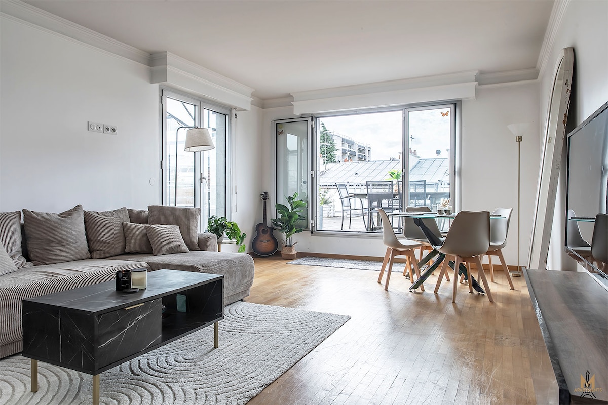 Terrace apartment 7 min from Paris and metro