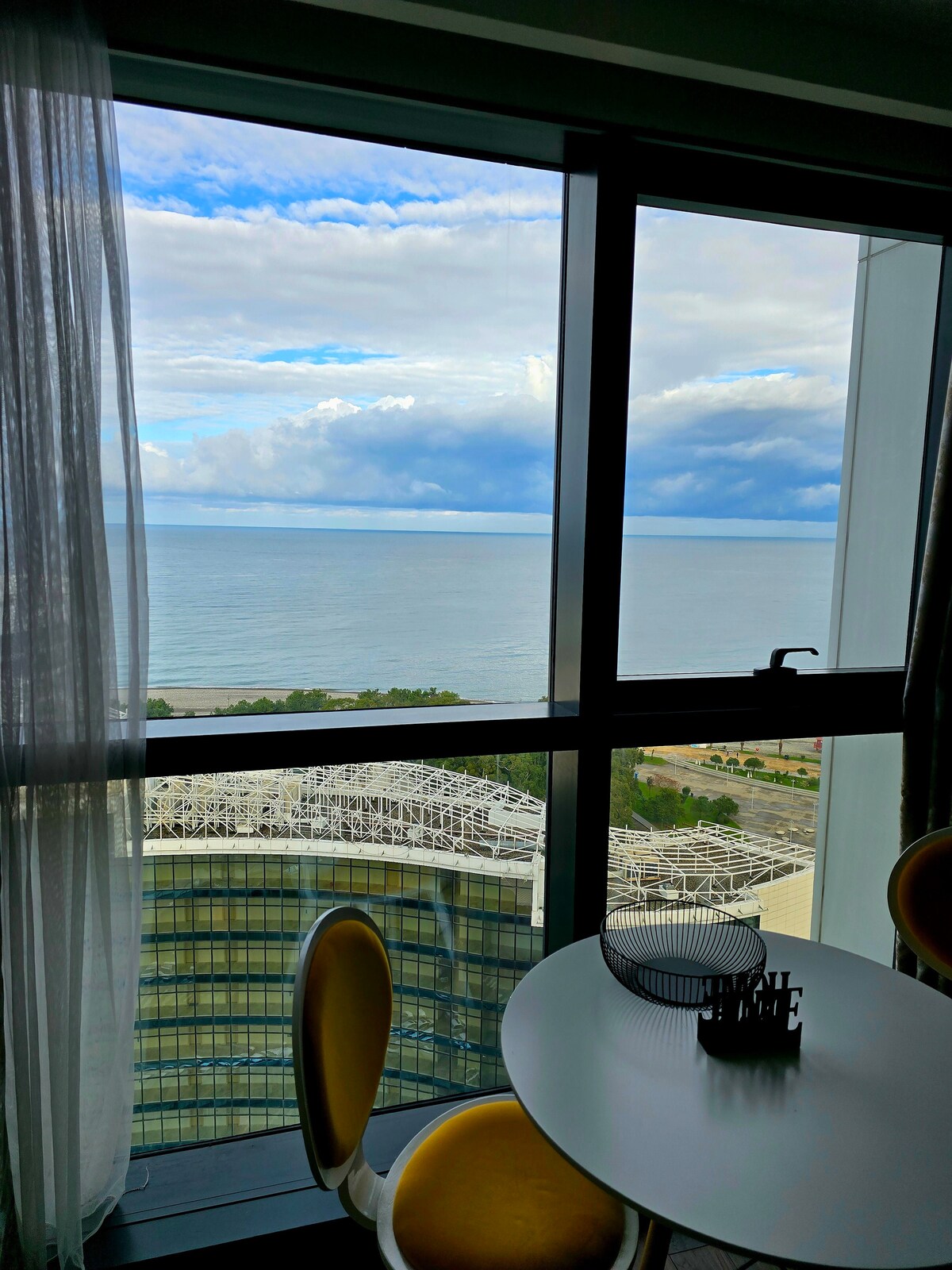 Насладитесь стильным отдыхом в центре города. Новый дом , высокий этаж в центре города с прекрасным видом на снежные горы , море , город . В низу расположены самые ТОПовые рестораны Аджарии .Квартира светлая с панорамными окнами , большим балконом с уютной зоной отдыха где можно видеть самые красивые закаты Батуми .
