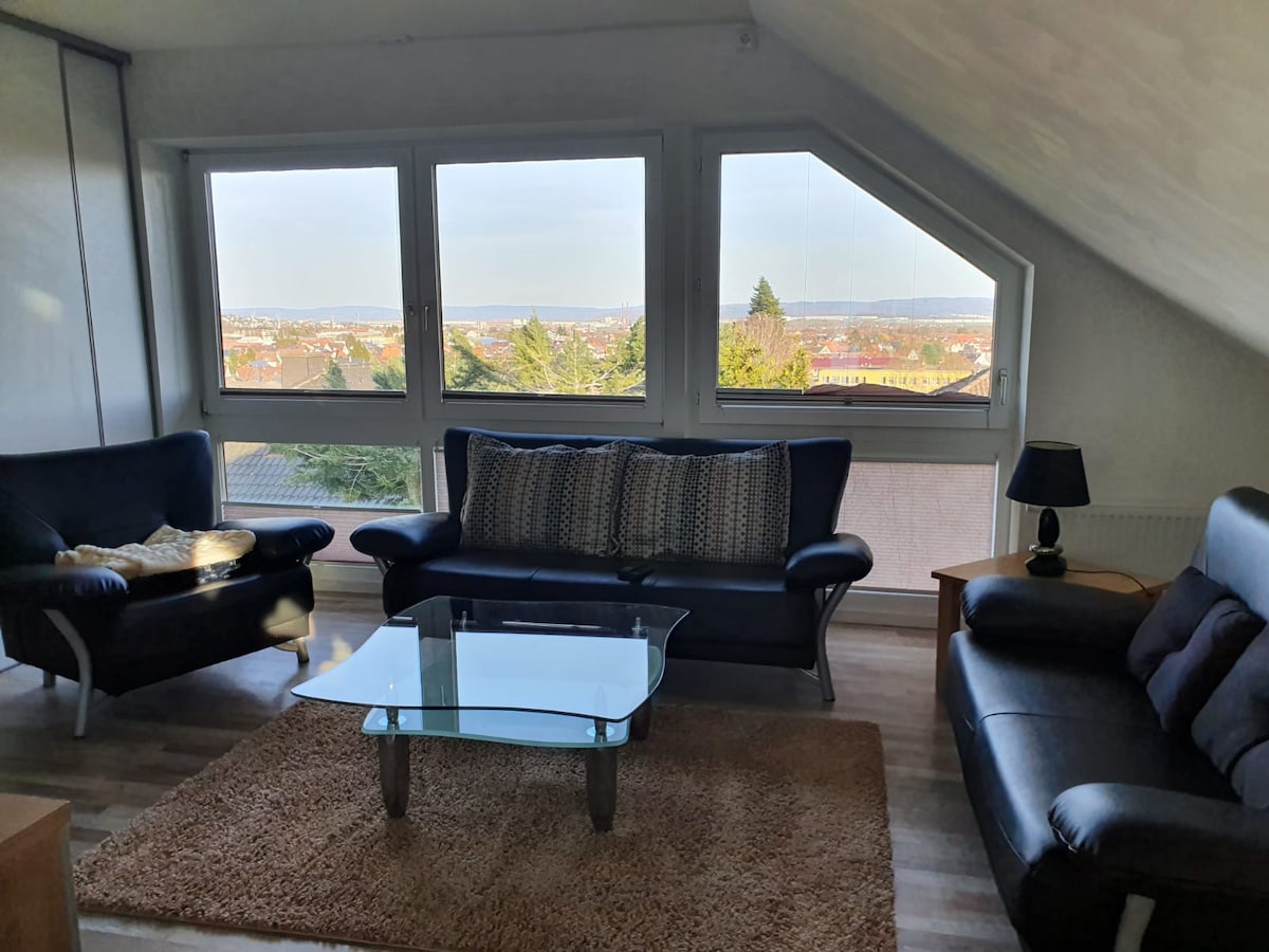 The apartment is located in the attic and is about 70 square meters. One double bedroom, one living room with small sofa bed and balcony, one kitchen with electrical appliances, one large bathroom with shower and bathtub. There is a bus stop right outside the front door and the S-Bahn stop is about a 10-minute walk away. In the immediate vicinity are beverage markets/supermarket and a pizzeria.