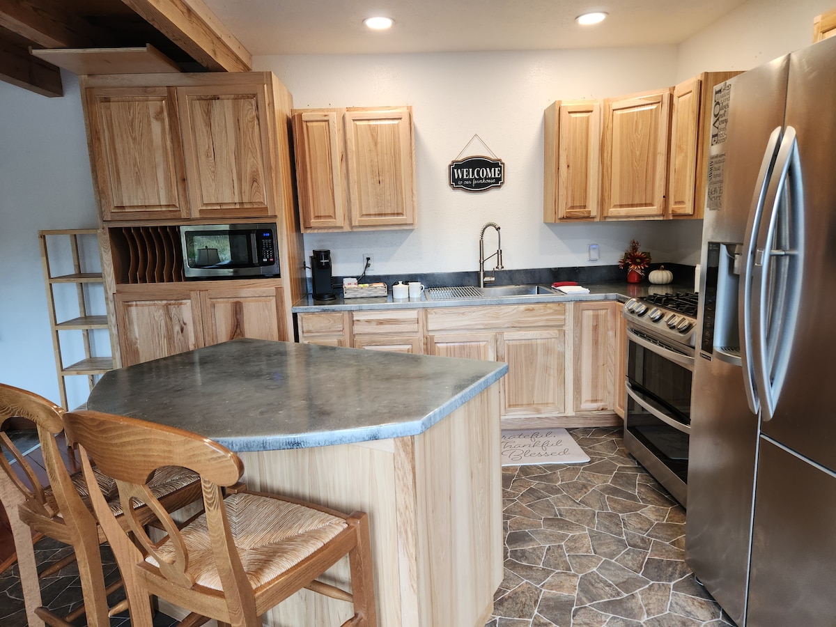 Our home has been described as being a home away from home with a fully stocked kitchen and coffee bar. This kitchen is for you if you like to cook and save on food expenses We offer an amazing Coffee Bar with pods and ground coffee. Keurig system (pot & pods), Coffee Press. Various teas, hot chocolate, Apple Cider, Liquid creamers and more *Waffle maker, Mix and Toppings *Snacks *Washer & Dryer *Grill & Picnic Bench on Patio *Swing set *EV Charger Level 2 *Fenced yard/gate