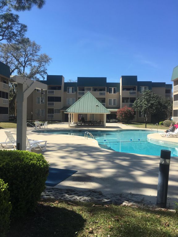 The Condo has 1 bedroom with Queen Bed,1 bedroom with twin beds, sleeps 4, 2 full bathrooms. Patio deck with Patio Furniture, unit has been completely refurnished. The resort offers indoor pool, jacuzzi, sitting room, with track, Inside fitness facilities, Wifi available in these areas, two outdoor pools, with restaurant and beach store, beach side bar & grill, Walk the boardwalk to the beach or take the quick shuttle. On-site bike rental available. NO PETS ALLOWED AND NO SMOKING!!