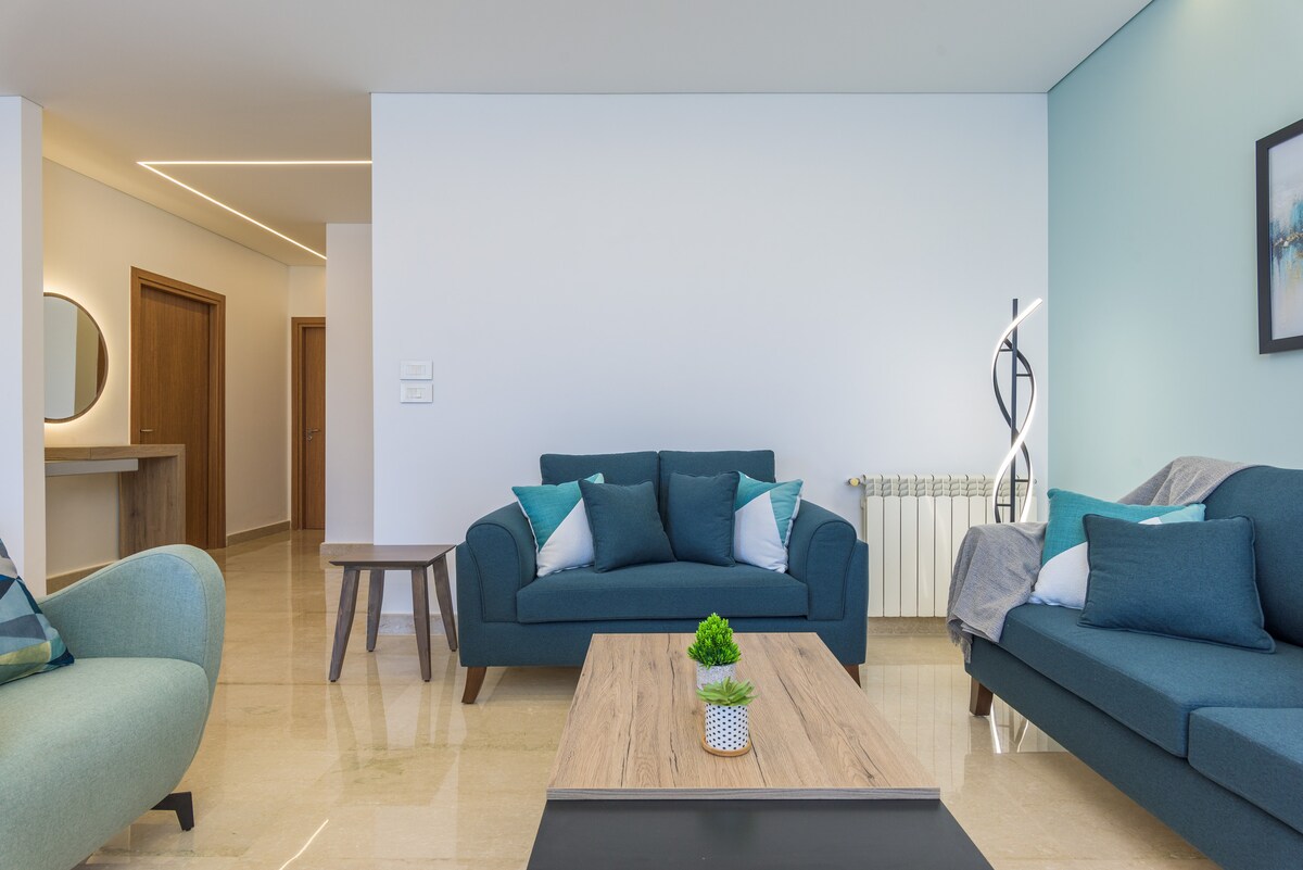 Experience tranquility in our One-bedroom apartment in Rawda/Metn. Features include a queen bedroom, comfy living room with 43" Smart TV, equipped open kitchen, private outdoor terrace, and a full bathroom with bathtub. Enjoy 24h electricity, instant hot water, free WiFi, and AC for cooling/heating in every room. Exclusive: Secure, private parking for up to 3 cars! Centrally located for easy access to everything, yet peacefully serene.