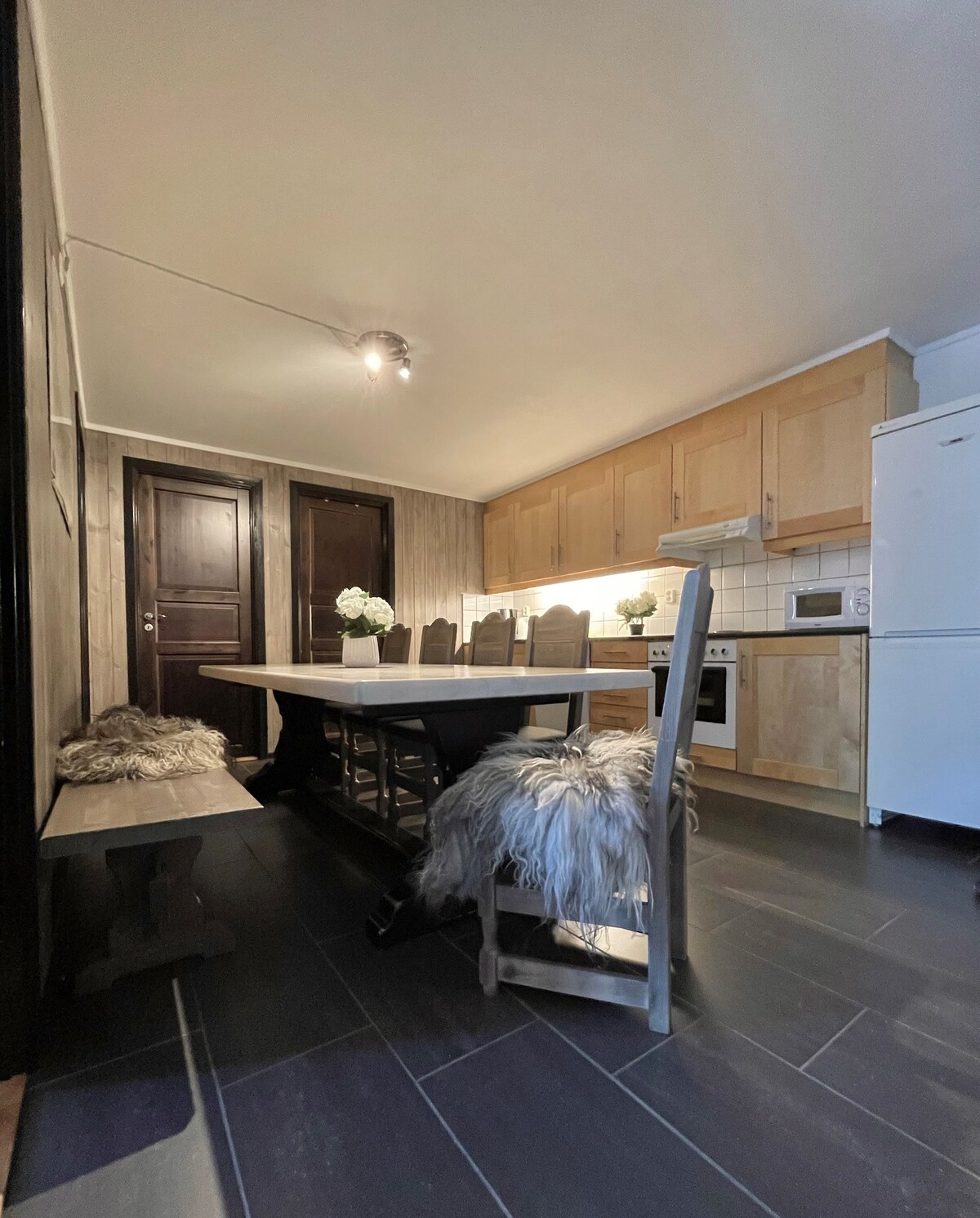 Nyt en stilfull opplevelse på et sted med sentral beliggenhet. Velutstyrt og koselig leilighet med alt du trenger for noen hyggelige dager på fjellet. Her kan du parkere bilen i oppvarmet garasje. Matbutikk, sportsbutikk, treningssenter og vinmonopol i samme bygning. Kun 10 meter til langrennsløyper, 300 meter til alpinanlegg. Flere flotte, gode restauranter og butikker i umiddelbar nærhet.