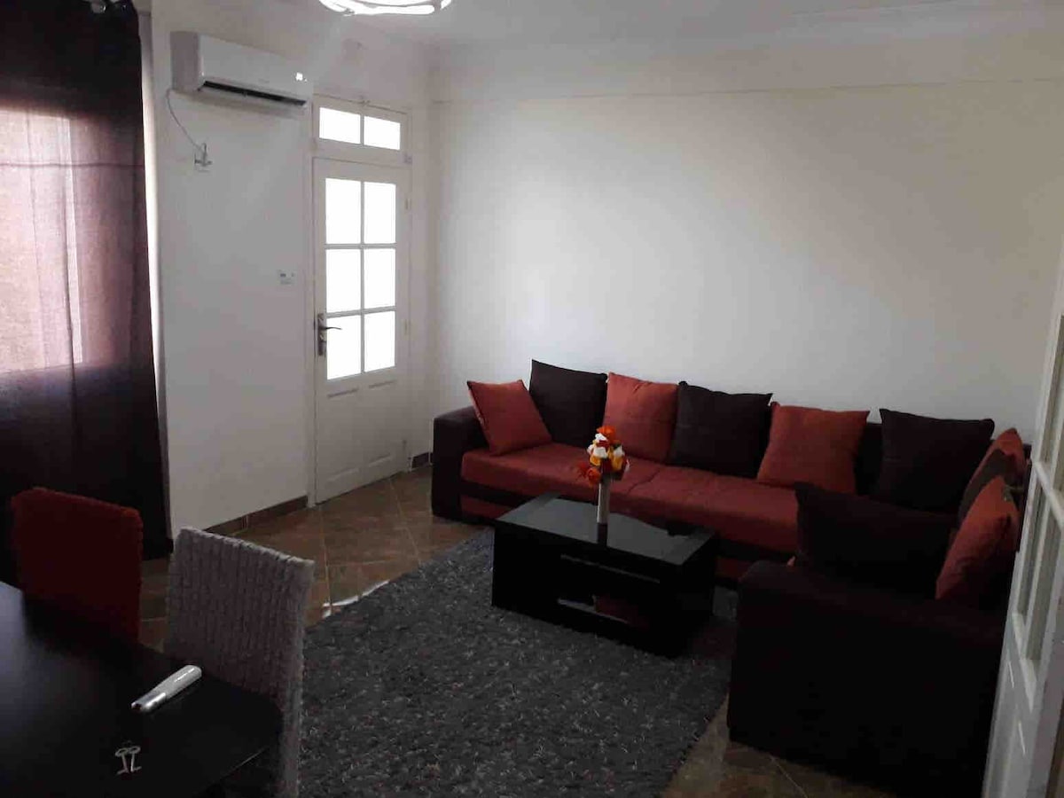 Welcome to Béjaïa! 🌊☀ The accommodation is close to all amenities, 6 min walk from pharmacies, bakery, food, tobacco, etc. The latter consists of 2 bedrooms that can accommodate 2 people each, and a large living room decorated with frescoes and a fireplace. (For more than 2 people, an extra €8 per person per night is to be expected) The kitchen is equipped with the essentials: cooking utensils, stove, fridge, washing machine. And finally, a bathroom.