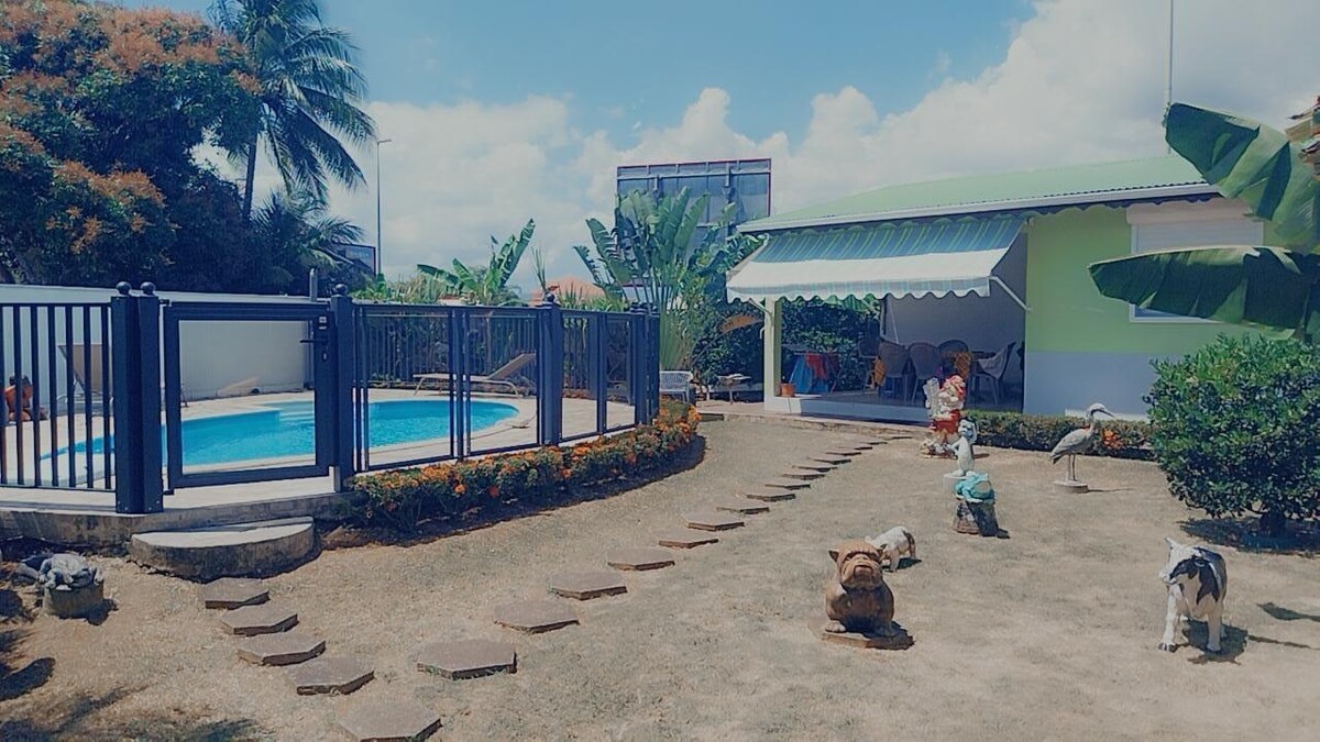 🌺 Bienvenue au Rubis : Votre Oasis Tropicale Évadez-vous dans notre charmant appartement, niché au coeur d'un petit quartier résidentiel où le calme et le confort règnent. Profitez d'une piscine toujours à bonne température et de la tranquillité environnante pour vous détendre en fin de journée. À moins de 5 minutes du centre commercial Destreland, ce refuge vous offre le privilège d'un emplacement idéal pour des vacances ou pour un séjour professionnel.