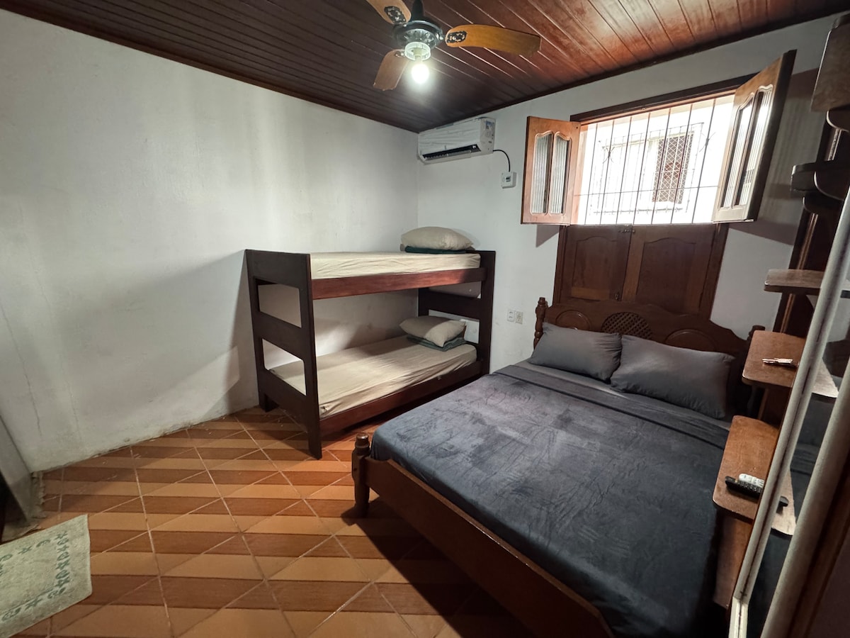 Enjoy the comfortable apartment with a home-like style. Beautifully decorated, designed for you, it can accommodate up to 6 people, with hammock ties, plus four single beds, and a Queen bed. Apartment located at the end of the building, entrance through the garage. You can enjoy a bright room, perfect for relaxing and gathering the family, with an open-concept kitchen and dining room. Two spacious bedrooms with ample closets for your belongings. Bathroom equipped with accessories.