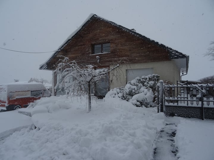Ce charmant appartement privatif, à 2 pas du Château de Rheinhardstein et du lac de Robertville, vous ravira en toutes saisons: à pied, à VTT, à rames, à skis! A 5 minutes du Parc Naturel des Hautes Fagnes, à 1/2 heure du circuit de Spa-Francorchamps, à 5 minutes des pistes de ski de fonds et alpin. Nous avons tout pour accueillir votre bébé. Quand nos poules pondent, on partage...!