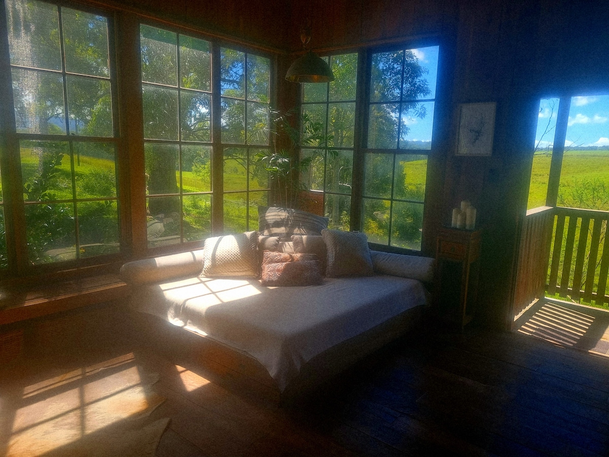 The Nutty Bungalow is an elegantly fitted out space and on an organic Macadamia nut farm.. strolling distance to long quiet beaches. .. a place of peace and simplicity and comfort... whatever the weather or season or reason. Open fireplace with wood provided for snuggly nights. Big, huge smart TV ... On the same property as my house but private with an orchard in between & far enough that noise doesn’t travel between at all. Dogs are welcome if they've been discussed & the dog rules agreed to..