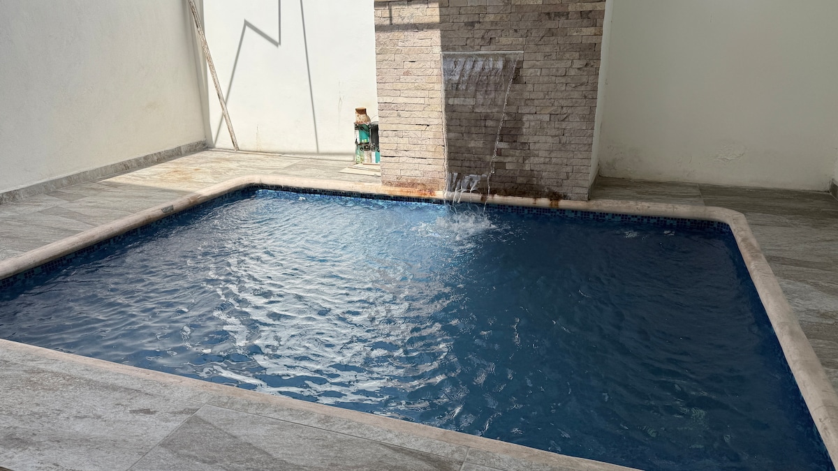 Casa Turquesa cuenta con una pequeña alberca 3x3 y 1.60 mto. de profundidad ( NO CLIMATIZADA ) Ideal para descansar después de un día largo de trabajo o si vienes de paseo con tu familia. (NO SE PERMITEN FIESTAS) (NO SE PERMITEN MASCOTAS) Estacionamiento para 2 autos. Tenemos 2 tinacos 700 y 1200 lt *Cámaras de seguridad afuera de la casa** Estancias largas estamos en contacto para el mantenimiento de la alberca. Checar Manual