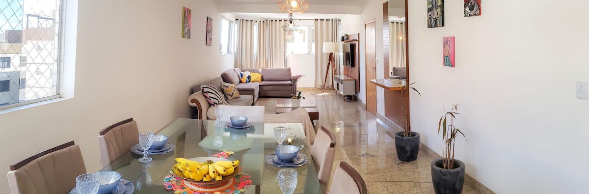 Our apartment offers a cozy atmosphere and is strategically located in the heart of Belo Horizonte Ideal for families and groups, the space features high-speed Wi-Fi and a fully equipped kitchen A few steps away, you will find supermarkets, pharmacies, restaurants, and tourist spots such as Praça da Liberdade and the Central Market are nearby. In addition, the proximity to public transportation facilitates access to other regions of the city Safe location.