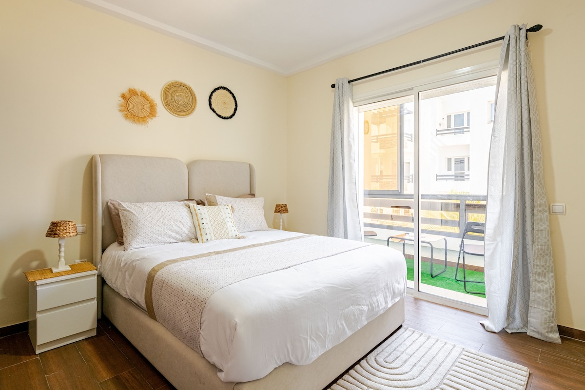 ☀️ Seaside Escape in Bouznika! Luxury 2-bedroom, 2-bathroom apartment at Évasion Bouznika — perfect for families, couples, or friends. Enjoy: 🌊 Sea view & quick walk to the beach 🏊 Direct pool access from your private terrace 🛏️ 2 bedrooms + bright living room 🛁 2 full bathrooms for extra comfort 🍽️ Fully equipped kitchen, WiFi, free parking Located in a calm, secure residence with 24/7 security. ✨ Comfort, sunshine & relaxation guaranteed!
