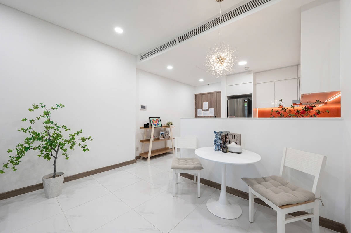 You will use the entire private 1 bedroom 1 bathroom apartment. The apartment has an elegant and sophisticated design next to Landmark 81 The apartment is fully equipped such as Smart Tivi - Internet, Kitchen with cookware and shower soap will be included *Please note that if you have any special request , please confirm us before make reservation because we may flexibly change apt to suitable with your request , there are only different in decoration design and view, Please feel free with it.