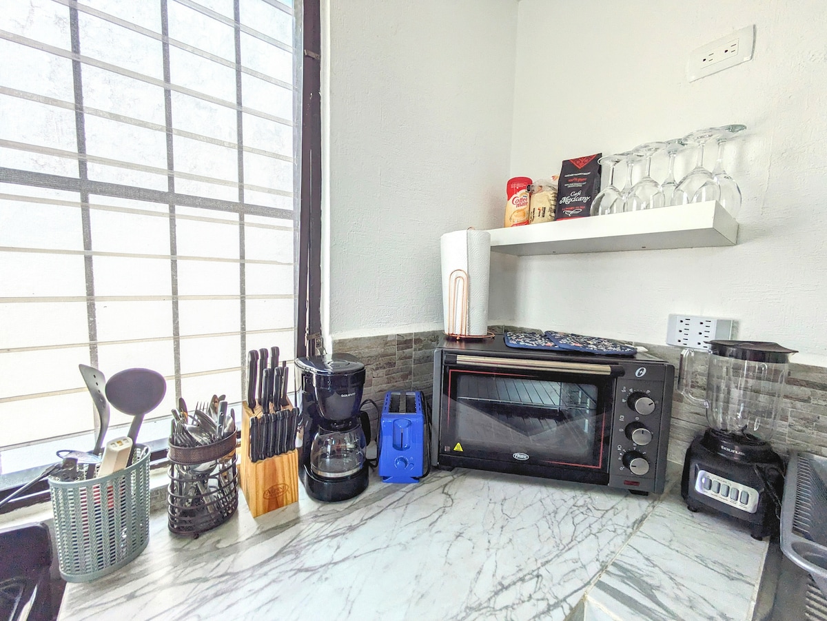 Studio 41. A completely renovated cozy space. It is located 10 minutes from Cancun International Airport and 10 minutes from downtown. The apartment is distributed in 1 bedroom with full bathroom and a living room space with kitchen. The kitchen has a dishwasher, minibar, electric stove, and all the dishes. It is a quiet, comfortable space for short stays and ideal for long stays.