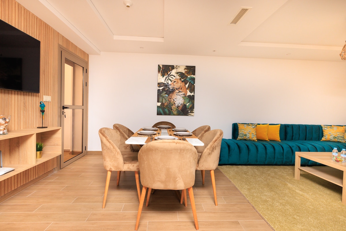 Have fun with the whole family or friends in this stylish place, a new and modern apartment in Saida. It is located in a quiet and safe area and provides you with complete comfort and relaxation. The apartment is 20 minutes walk and 5 minutes drive from the sea, making it ideal for lovers of the sea 🏊♂️ 🐬and tranquility. 😌😎