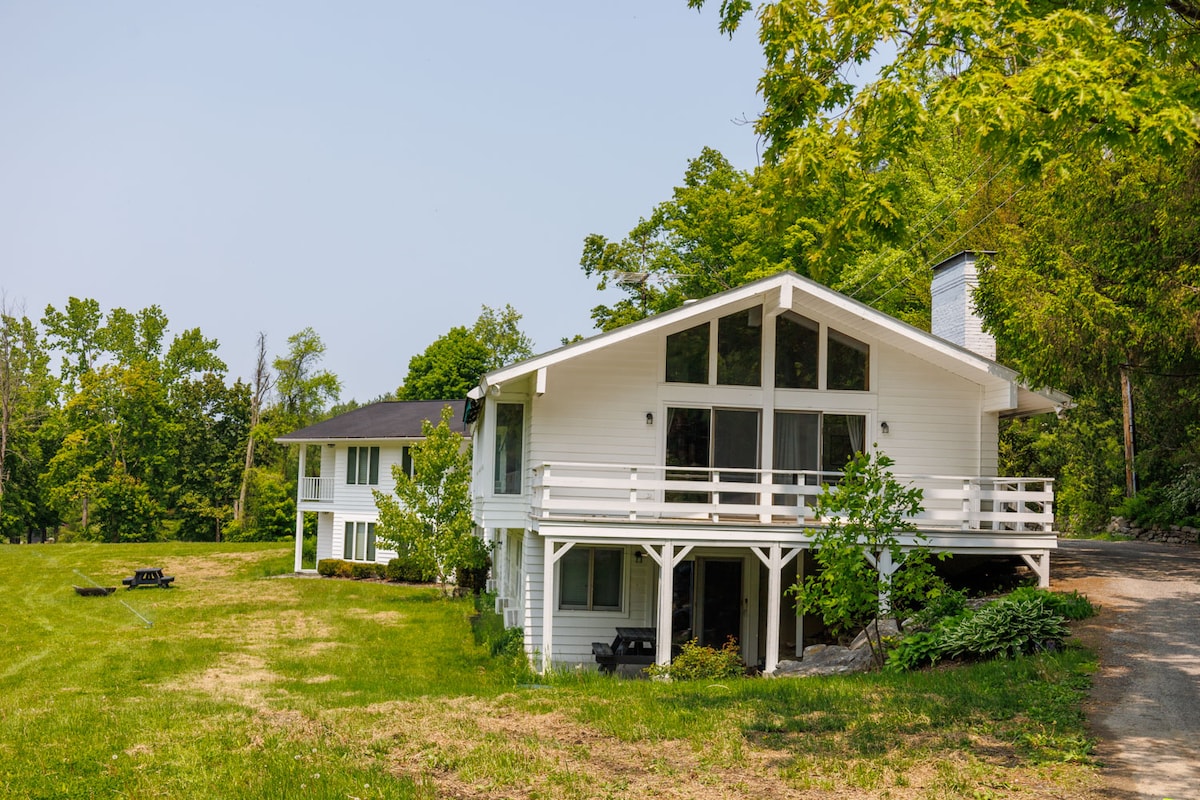 We welcome you to explore the magic of Sunset Ridge Chalet (SRC). Ideally situated in the Hudson Valley/Berkshires cultural corridor, SRC offers unparalleled panoramic sunset views of the mountains and rights to Queechy Lake. On 7 private acres the Chalet offers the unique opportunity to disconnect from our busy lives and reconnect with ourselves, family, or friends. Imagine starting the day with sunrise yoga on the enormous mahogany deck and ending it with sunset cocktails on the same deck.