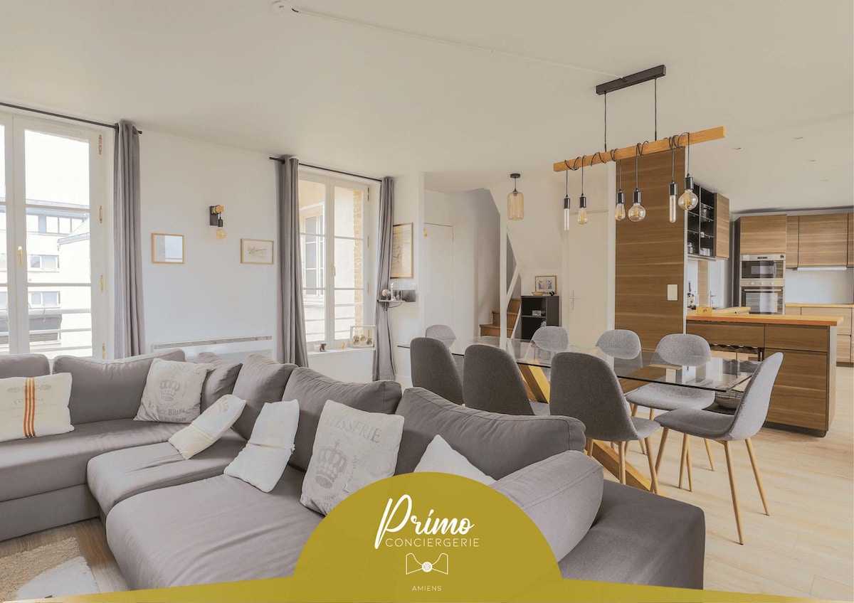Cozy apartment, located on the 3rd floor of a quiet and secure building, benefiting from a large terrace with views of the Notre-Dame d'Amiens Cathedral. This 50 square meter space, in the heart of the city center, close to the Belfry and the Saint Leu district famous for its bars & restaurants, will offer you all the comfort to make your stay very pleasant! Just a 5-minute walk from the SNCF train station for travelers who love trains.