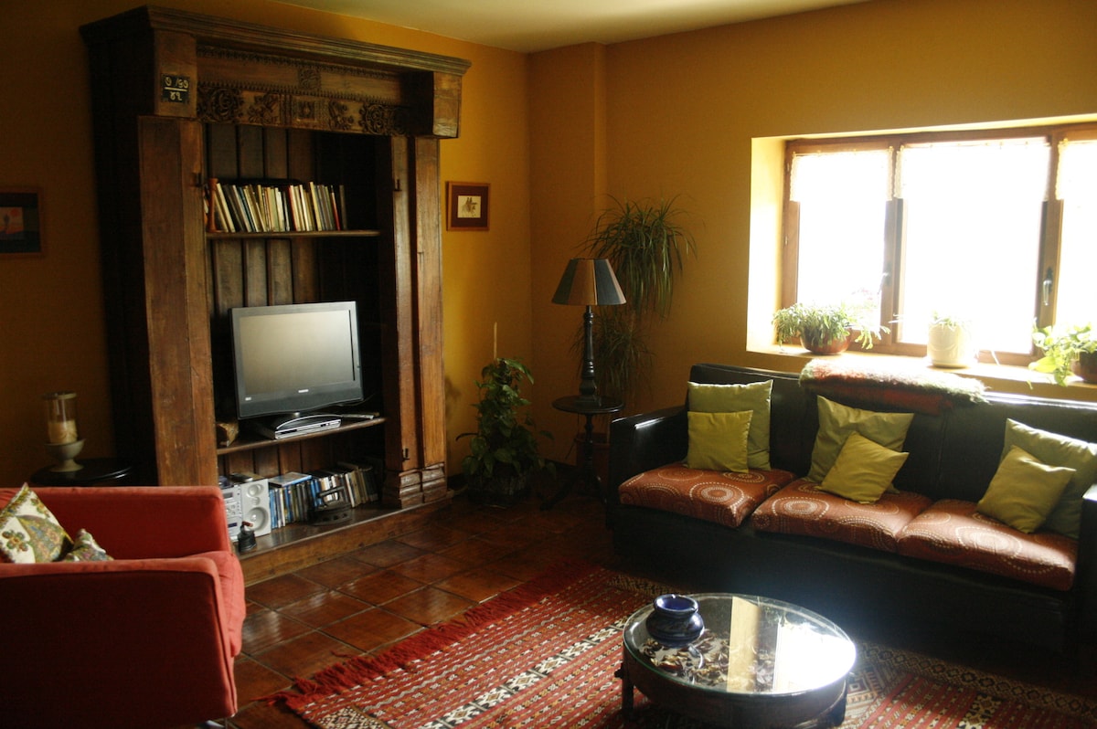 Private room in Casa 'Ohana with double bed or twin bed and single bath with private bathroom. Shared garden, terrace & dinning-room. Located in the green hills of Cantabria close to Comillas, Playa Oyambre and San Vicente de la Barquera.