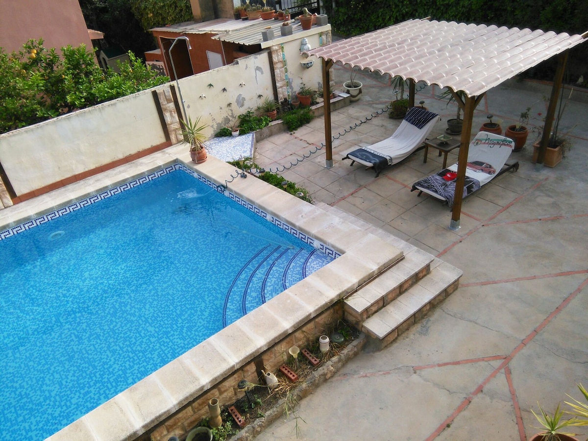 Relax with the whole family at this peaceful place to stay. Independent villa located in Torrent, 25 minutes from Valencia, a quiet area. With an elegant garden, barbecue, swimming pool and solarium areas. The ground floor has 3 bedrooms (1 double, 1 with two twin beds + 1 with a bunk bed, equipped kitchen, bathroom, dining room with fireplace and a terrace overlooking the garden The first floor, mezzanine, has an open space with a double bed, bathroom and terrace