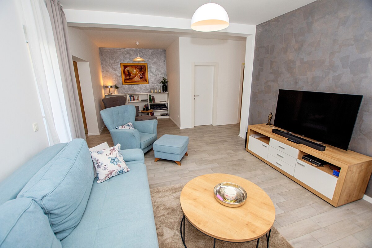 Forget your worries in this spacious and serene space. The apartment consists of a bedroom with a king size bed, one bathroom, living and dining area and a kitchen. In addition it has a very spacious terrace and is equipped with AC, Wi-Fi, satelite dish, TV, coffe making facilities.. Free parking and free boat mooring is available per request. Pets are welcome. For any additional request we stand at your disposal.