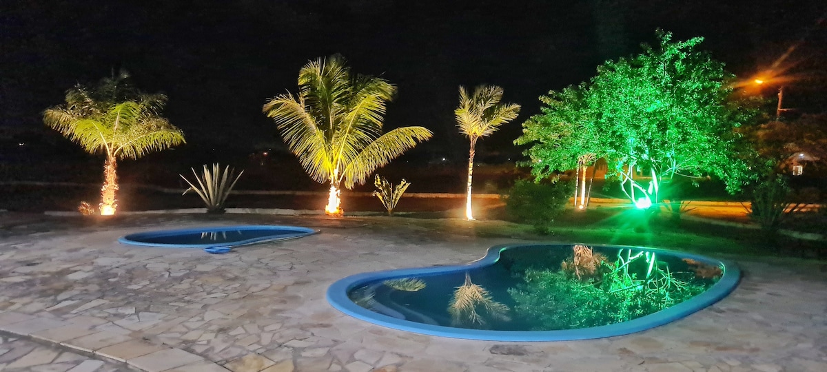 Relaxe com toda a família nesta acomodação tranquila. Casa em condomínio com segurança 24 horas, área de piscinas, quadra poli esportiva, salão de festas, parque para crianças, sala de jogos e academia de ginástica. A casa têm 3 quartos, sendo um com suíte, sala com tv, cozinha completa com fogão, forno elétrico, microondas, geladeira, bebedouro de água gelada, enxoval completo de cama e cozinha. Temos também uma churrasqueira e uma área de serviço com um banheiro e máquina de lavar roupas.
