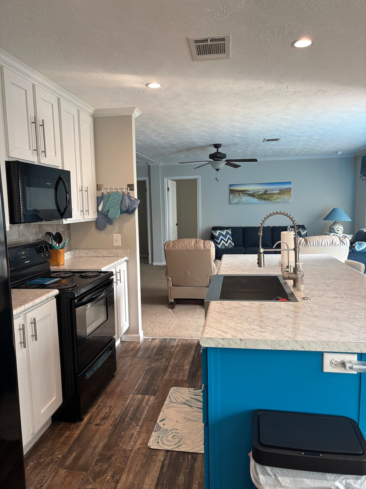 Welcome to Bay Breeze Bungalow, a cozy, new construction 2 bed, 2 bath smart home made for comfort and relaxation. The open living area flows into a beautiful kitchen with a large island and coffee bar. Unwind with an endless hot shower and enjoy the 85” TV w/ gaming hookup and high-speed internet. Gather around the firepit, charge your EV with the Level 2 charger, and enjoy sidewalks and a kids park just a 5-minute walk away. Only 1 minute from NAS West Gate and 10 minutes to Perdido Key Beach.