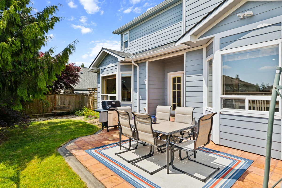Cool off this summer in our charming suite with lots of fun features including air conditioning, your own private hot tub, and home theater! You have the entire 1,000 sq ft lower level with private entrance and self check-in. Located in a quiet rural neighborhood less than 10 minutes from I-5 and all the amenities of town. No shortage of fun things to do nearby -- everything from great hiking to shopping & wineries. 55 miles to North Cascades National Park, 28 miles to San Juan Islands Ferry.