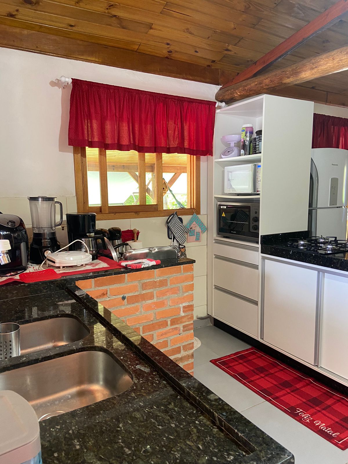 The site is located in Grande Florianópolis/SC, in the rural area of Biguaçu, in Três Riachos. Air-conditioned house, with a large balcony. Living room and kitchen combined with double height, fireplace, barbecue and wood stove, 4 bedrooms, 1 en-suite. Laundry, covered garage for 2 cars and play area with pool table, foosball and hockey. Children's playground, lighted multi-sport court, swimming pool, 3 horse stalls, lookout tower for the landscape, natural stream, lake with carp and fruit trees.