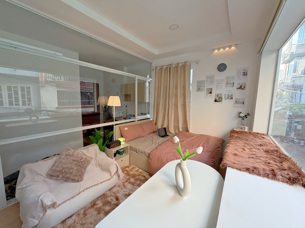 A unique 60sqm studio hidden in an alley in the heart of Saigon, offering both privacy and convenience. Located on the 2nd floor of a townhouse, right above cozy BeanThere Café on the ground floor, it’s perfect for guests who love stylish living and great coffee just steps away. Only minutes from famous attractions, shopping malls, and vibrant nightlife. Each guest enjoys 1 complimentary breakfast per night (1 food + 1 drink combo). Free housekeeping for stays over 4 nights with 1-day notice.