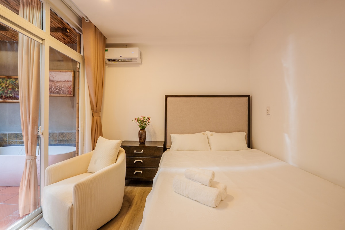 Skip the tourist traps and live in Saigon’s trendiest "hidden gem" Phạm Viết Chánh. Tucked in the heart of Little Japan, this stylish Japandi retreat is steps from the city's best artisan cafés, hidden bars, and local street food. - 5 mins drive to Bach Dang Quay, Duc Ba Church & Saigon Opera House Exclusive Perks: ⭐ Bathtub & Japanese Toilet ⭐ Elevator Access ⭐ FREE Extra Towels (early request) ⭐ Private Washing Machine & Dryer ⭐ Shampoo & Body Wash