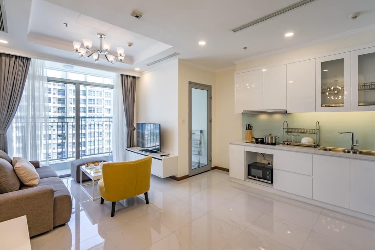 Keep it simple at this peaceful and centrally-located place. The apartment is located at Vinhomes Central Park - an ideal place to live with modern and luxurious living space. This condo is on the 12Bth floor in Landmark 4 which is close by landmark 81-the highest building in HCMC. There's a lot of convenient stores, restaurants, coffee shops close by just some walks. There is a shopping Mall Vincome Center opposite to the building which has many brand stores and foodcourts.