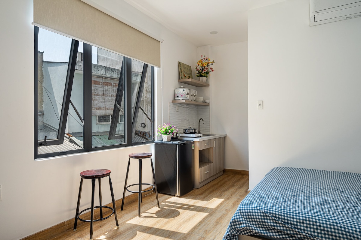 Cubicity is serviced apartment chain in HCMC. The apt comes fully furnished, so you don't worry about bringing anything with you. This cozy studio apt is ideal for anyone looking for a comfortable living space in the heart of the city. ✯ 200m Tan Dinh Church, 200m Tan Dinh Market, 1km Independence Palace ✯ Elevator. Self-check-in. Late-night check-in anytime ✯ Smart TV with Youtube, AC, Microwave, Kitchenette, & Fridge available, Large window, Bed 1.6m, Mattress 25cm thick, Private bathroom.