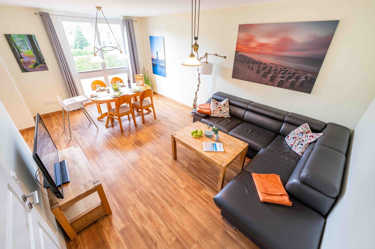 The apartment EMILY (up to 4 people) directly above the port of Sassnitz offers a large terrace, a large, bright living and dining area with a new, large box spring sofa bed, a modern fully equipped kitchen, a quiet bedroom and a beautiful bathroom. Fantastic views! More information at lennartberger-apartmentpunktde