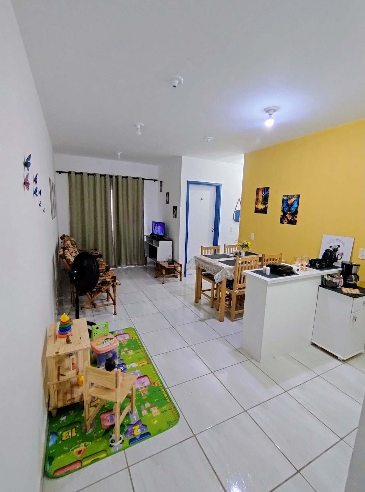 Cozy apartment, with colors that make the atmosphere welcoming, decorated with original paintings that make the atmosphere even more unique. Quality shower for an invigorating bath, increasingly practical kitchen to make everyday life easier. The apartment is on the ground floor, which facilitates locomotion. All windows have privacy and are free from the movement of people. Finally, it has the advantage of a private area that is partially covered and has plants, which makes the environment more cozy.
