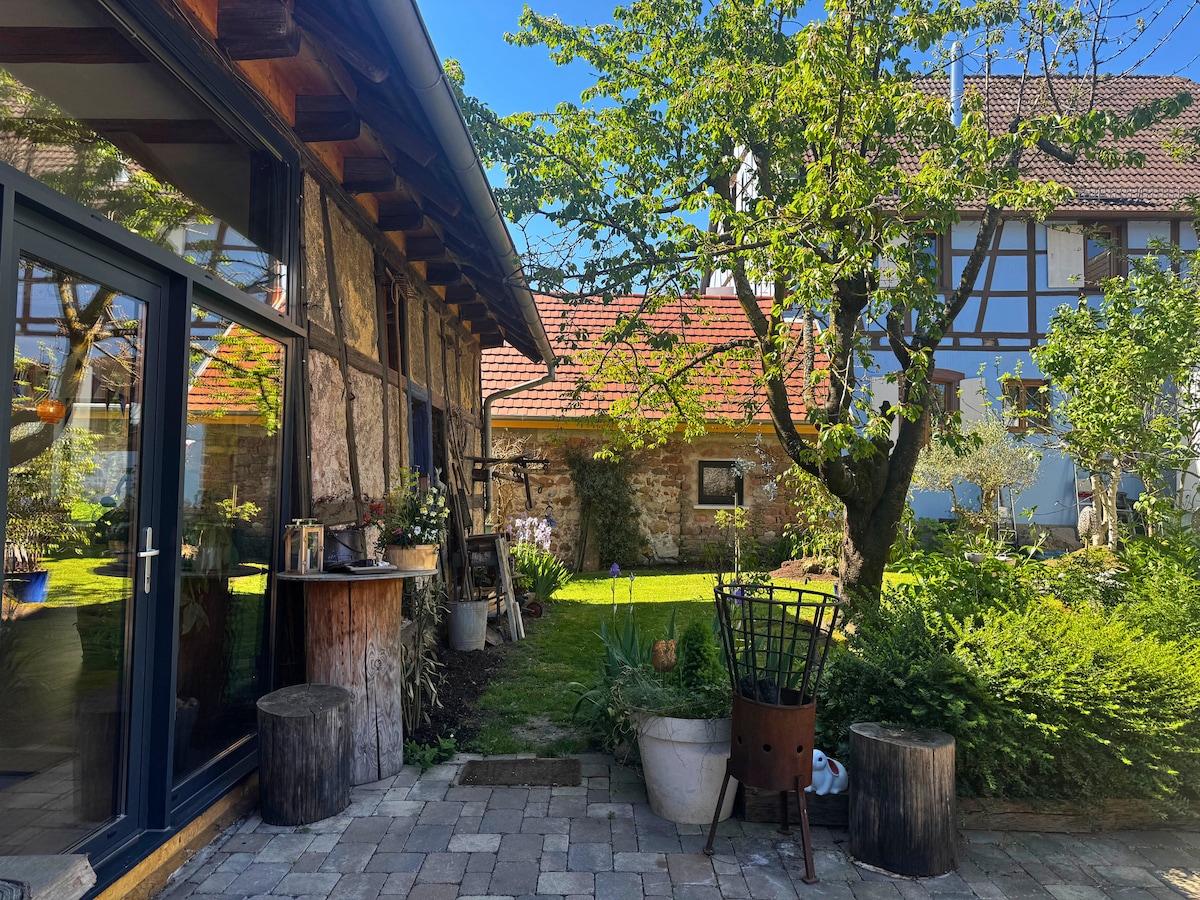 Welcome to the Black Forest! This beautiful architect´s house is located in a quiet residential area surrounded by idyllic vineyards and some of the most beautiful paths for hiking or mountain biking start directly in front of the door. The house has a big garden with a magnificent old stock of trees and a little creek. As this house was renovated looking after the design and the details and also with some technical refinements, i am looking forward to welcome you into this cozy home.