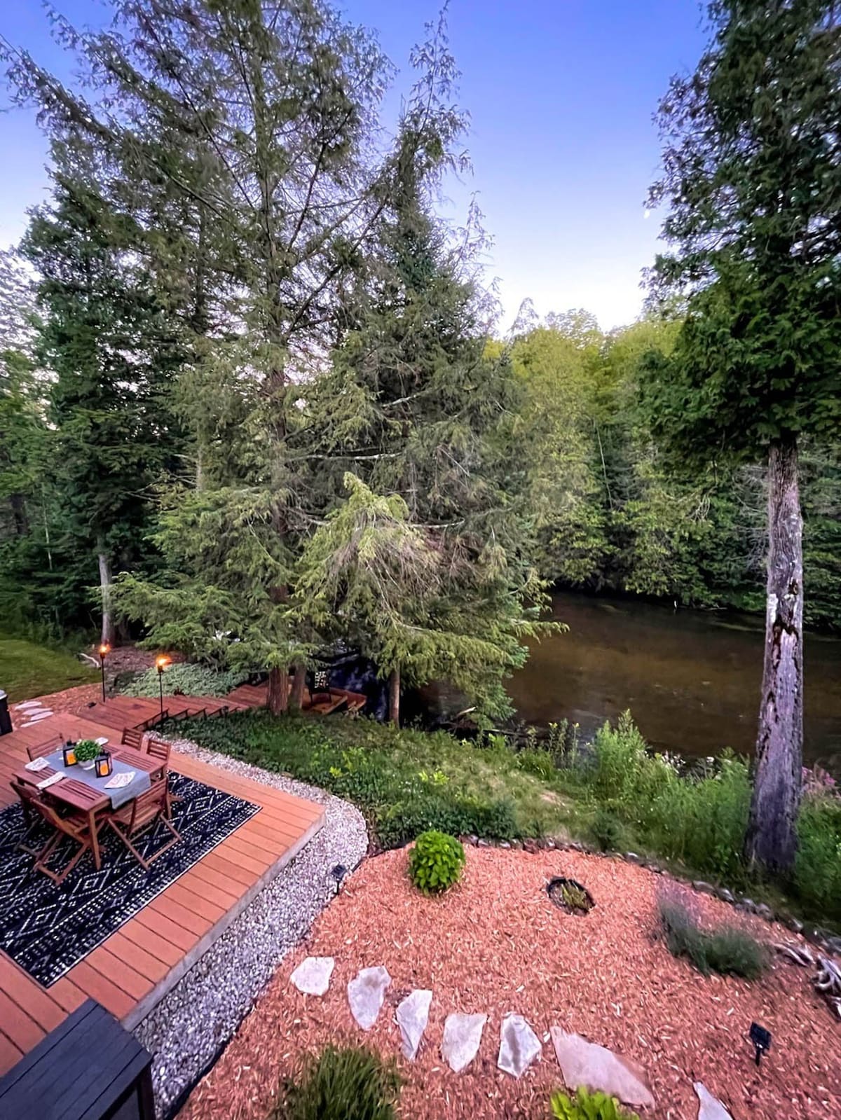 This lovely Bungalow on 5 acres is nestled along 1000ft of the Boardman River. We have kayaks, hammock, outside dining/living area with fireplace, and hot tub. The property is surrounded by state land and trails, perfect for hiking, kayaking, side by sides, and snowmobiling. The kitchen is fully stocked with basic condiments. The bathroom has towels, a hair dryer, small toiletries and soaps. WiFi will help you stay connected. Perfect for a honeymoon stay or couples getaway! 25 minutes to TC.