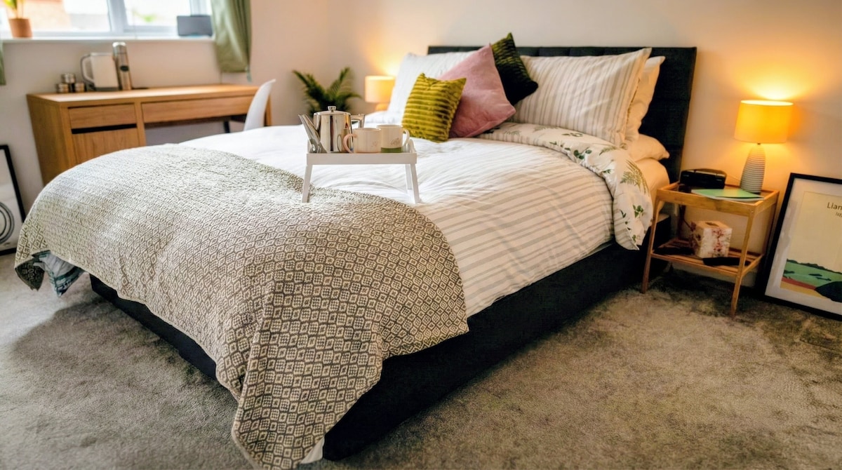Comfortable studio style room for 2 people located on the ground floor of our family farmhouse. Conveniently situated 3 minutes from junction 5, A55 expressway. Great location for exploring nearby seaside village of Rhosneigr and surrounding beautiful beaches. On route for visiting Anglesey Circuit. The studio has a very comfortable super king size bed that can be separated into two single beds .(Please advice of your requirements). Shower room with underfloor heating.