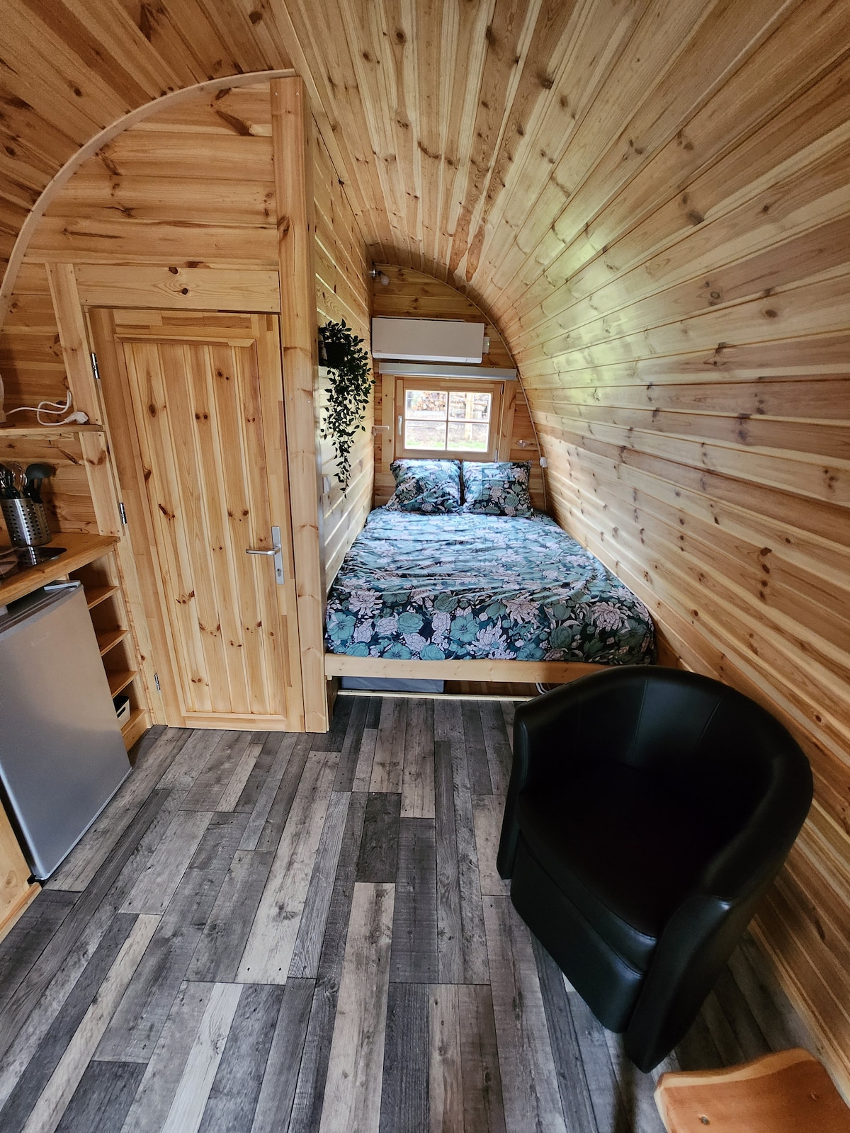 This wooden cabin nicknamed "Pod" has a style all its own. Its shape, volumes and layout will surprise you at first glance. A sleeping area with its full bathroom and an equipped kitchen will make your stay pleasant... not to mention its terrace for a relaxing moment. It is located in the Jura countryside with its many ponds, forests and animals. Cycling, fishing and horseback riding enthusiasts, welcome.