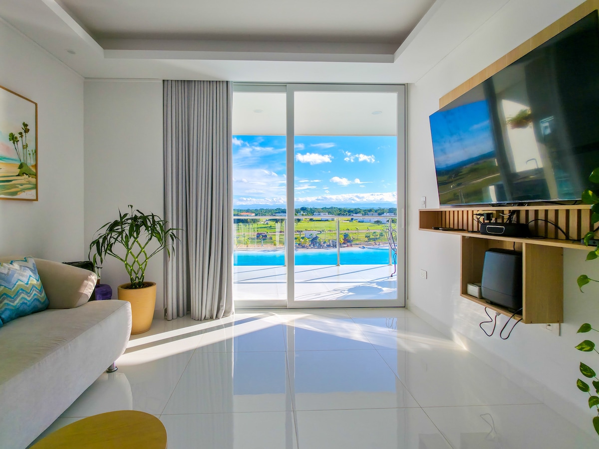 Beautiful and elegant apartment with access to and view of the beach, a simply spectacular vacation spot surrounded by nature, with tennis courts, a lagoon with crystal clear water that simulates a Caribbean beach, specifically Eagle Beach in Aruba, away from the annoying noises of the city and with the comforts of a city apartment with everything you need to spend an incredible vacation with your family