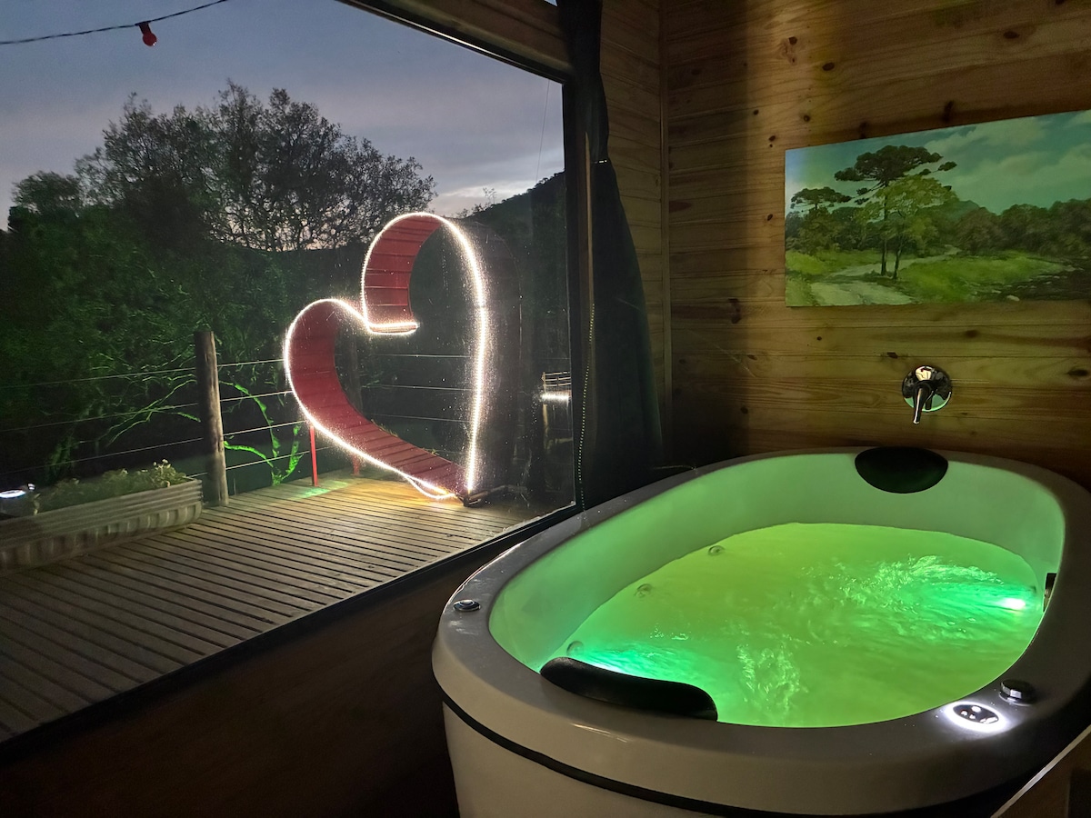 Cabana LUZ is the second of Villa Vida Cabanas and designed for couples, groups and families. Charming, elegant and equipped to provide unforgettable days. It has gas heating, a heater, hot and cold air-conditioning and modern appliances for your comfort. With an area of 180 m2, Cabana Luz comfortably accommodates up to 5 people in the two en-suites and sofa bed, integrated living room, full kitchen, bathtub and a wonderful deck with barbecue in the midst of exuberant nature.