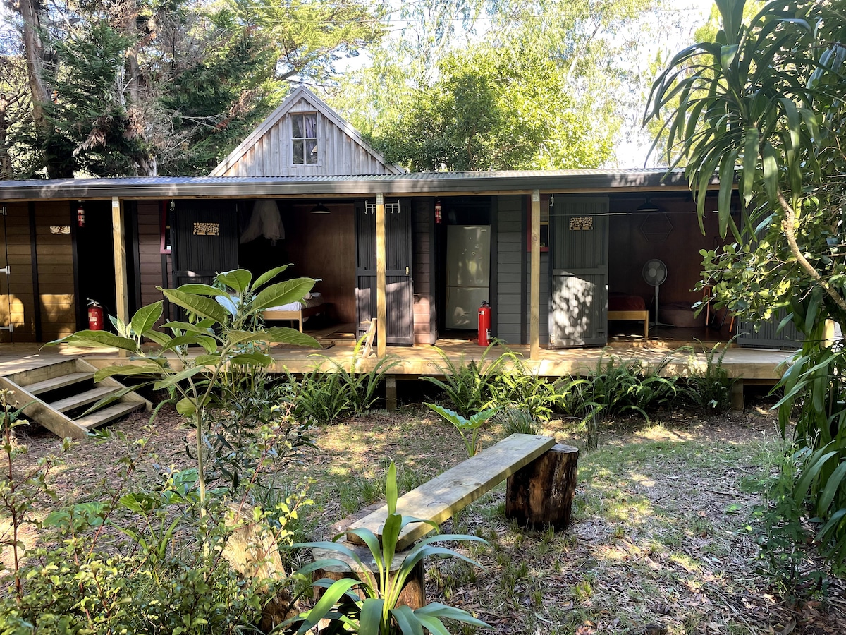We have 3 cabins and a renovated caravan on site... Ideal for fishermen, boaties, girls weekends, family groups - we offer you a rustic, cosy island experience. Arrive by ferry from Sandspit or your own boat, bring walking gear and fishing rods, cook in the kiwiana camp kitchen…shower and toilet on site. 50 m from water's edge. Enjoy our little bit of paradise an hour from Auckland (+30 min ferry). Note we also have ‘The George’. Listed separately on Airbnb.