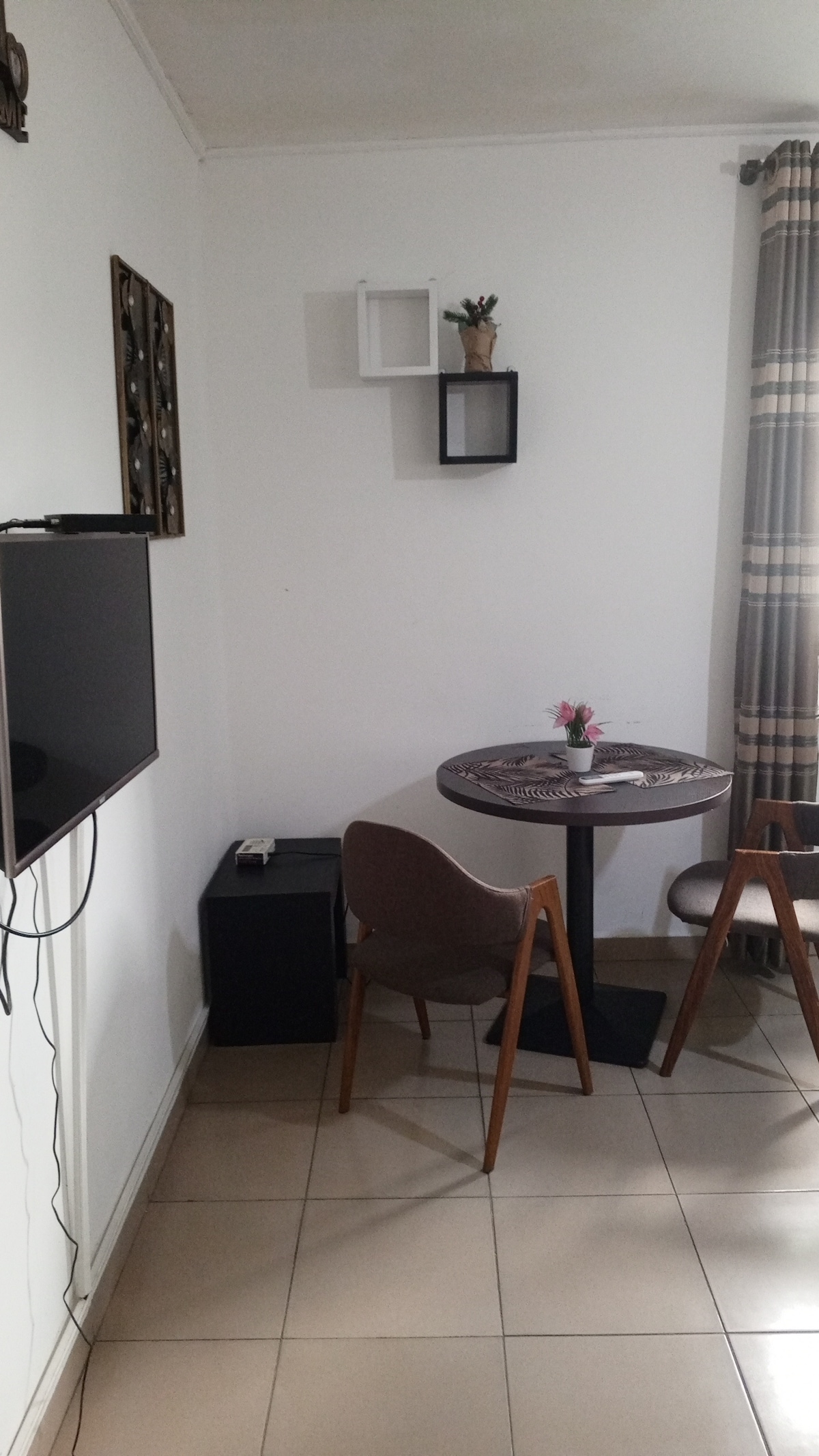 Furnished two-bedroom apartment located in Makepe, Douala, on the side of the road. Fully equipped, it is ideal for courses and long stays. Equipped with two balconies, unlimited high-speed internet (fiber optic), Canal Sat, a Smart TV with Netflix, Amazon Prime and YouTube integrated, 24/7 security, surveillance cameras in the building, free parking, hot water tank, washing machine, equipped kitchen, air conditioners in all rooms, two fans, generator.